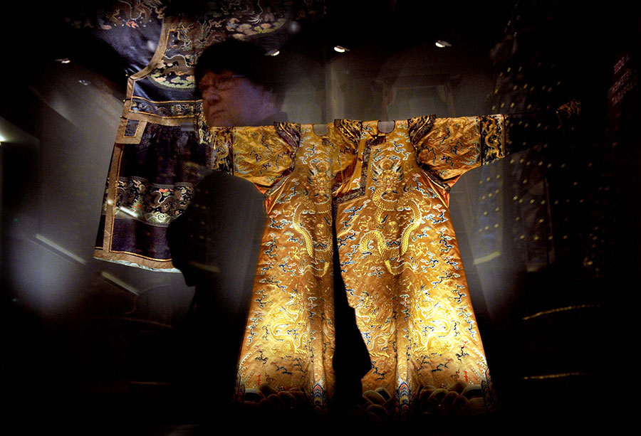 An exhibition of Chinese art treasures is recently launched at the Decorative Arts Museum in Paris to commemorate the 50th anniversary of the establishment of China-France diplomatic relations. The collection, donated by senior collectors in France, includes furniture, clothes, lacquerware, wood carvings, and porcelain, jade, bronze and agate items of the Chinese Ming and Qing dynasties. [Photo/Xinhua]