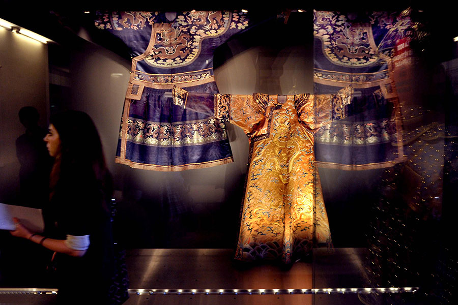 An exhibition of Chinese art treasures is recently launched at the Decorative Arts Museum in Paris to commemorate the 50th anniversary of the establishment of China-France diplomatic relations. The collection, donated by senior collectors in France, includes furniture, clothes, lacquerware, wood carvings, and porcelain, jade, bronze and agate items of the Chinese Ming and Qing dynasties. [Photo/Xinhua]