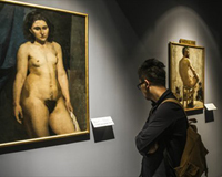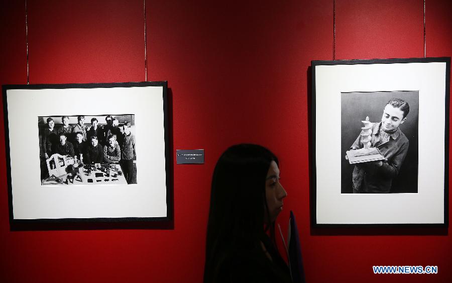 A woman walks past pictures by French photographer Robert Doisneau at a photo exhibition in Beijing, capital of China, May 14, 2014. An exhibition named Doisneau's Renault kicked off here Wednesday. More than 70 pictures of Doisneau, one of the greatest photographers in the 20th century, are displayed on the exhibition which will last until June 30. (Xinhua/Wang Shen)
