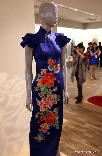 A cheongsam, a traditional Chinese women's dress also known as Qipao, is displayed at the Nanjing Museum in Nanjing, capital of east China's Jiangsu Province, May 17, 2014. (Xinhua/Wang Xin)