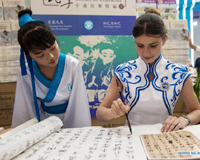 Visitors view cheongsams in exhibition at Nanjing Museum
