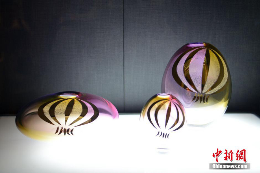 145 sets of glass products produced in Sweden are displayed at the exhibition. The products that were produced in the past two centuries are an epitome of the history of the production of crystal glass in Sweden. May 18 is International Museum Day. (Wang Sizhe/Chinanews.com)