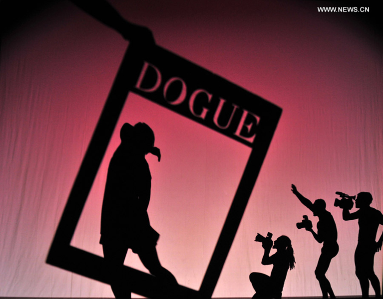 Artists from American shadow dance company Pilobolus perform during a press rehearsal for" Shadowland" in Taipei, southeast China's Taiwan, May 20, 2014. Pilobolus' shadow dance "Shadowland" will be staged in Taipei from May 20 to 24. (Xinhua/Wu Ching-teng)