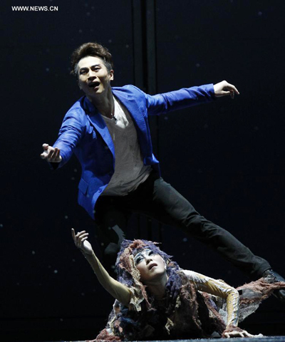 Dancers perform in the dance drama "Meet the Grand Canal" in Hangzhou, capital of east China's Zhejiang Province, May 21, 2014. The dance drama, featuring the ancient Grand Canal connecting Beijing and Hangzhou, premiered at the Hangzhou Grand Theater on Wednesday, and will be put on stage in cities along the canal which is bidding for UNESCO World Heritage status. (Xinhua/Wu Huang)