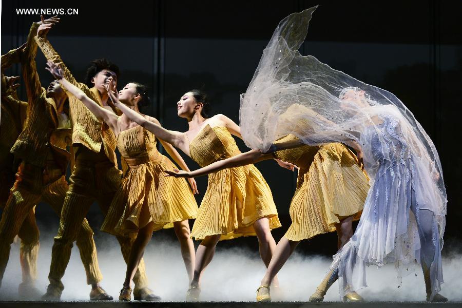 Dancers perform in the dance drama "Meet the Grand Canal" in Hangzhou, capital of east China's Zhejiang Province, May 21, 2014. The dance drama, featuring the ancient Grand Canal connecting Beijing and Hangzhou, premiered at the Hangzhou Grand Theater on Wednesday, and will be put on stage in cities along the canal which is bidding for UNESCO World Heritage status. (Xinhua/Li Zhong)