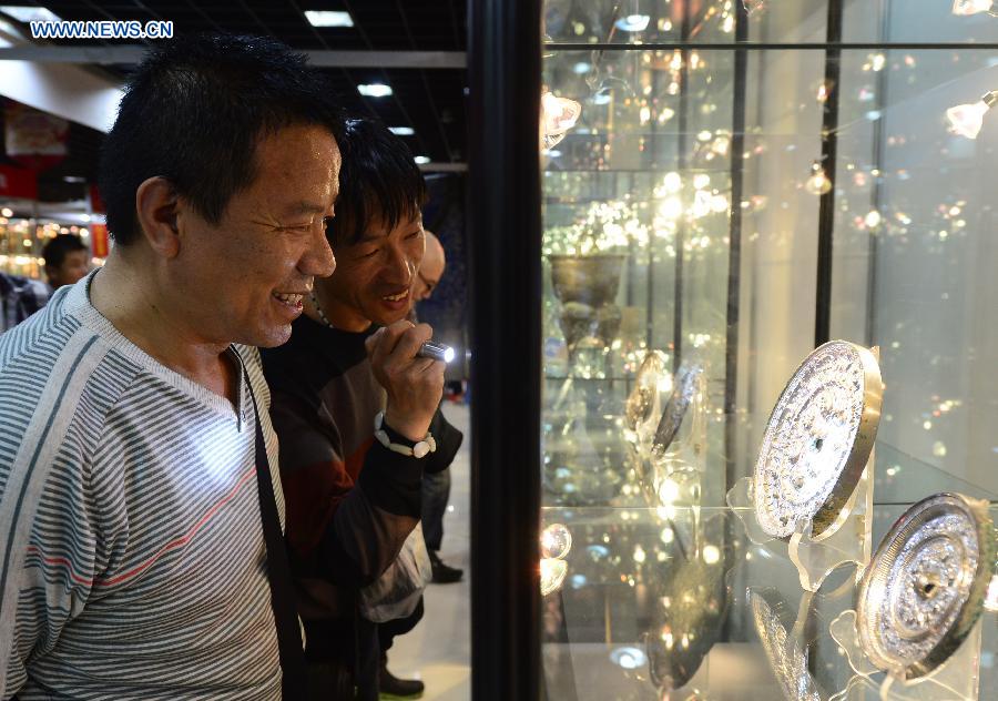 Visitors view exhibits at the 5th China Private Museum Collections Expo in Xi'an, capital of northwest China's Shaanxi Province, May 23, 2014. The four-day exposition kicked off on Friday, attracting nearly 100 private museums to exhibit over 5,000 collections. (Xinhua/Liu Xiao)