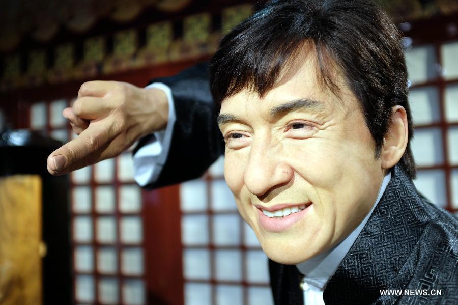 Photo taken on May 29, 2014 shows the wax figure of film star Jackie Chan at Madame Tussauds Wax Museum in Beijing, capital of China. London's Madame Tussauds Wax Museum set up its branch in Beijing this summer, and the museum will officially open to the public on May 31.(Xinhua/Wang Jianhua)