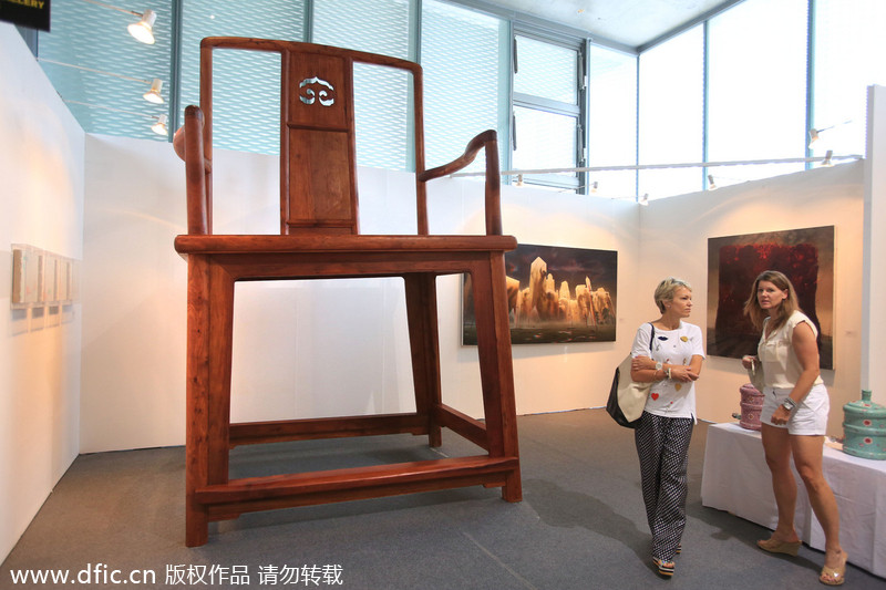 A visitor enjoys art at the Asia Gallery Art Fair in Shanghai, China, June 5, 2014.[Photo/IC]