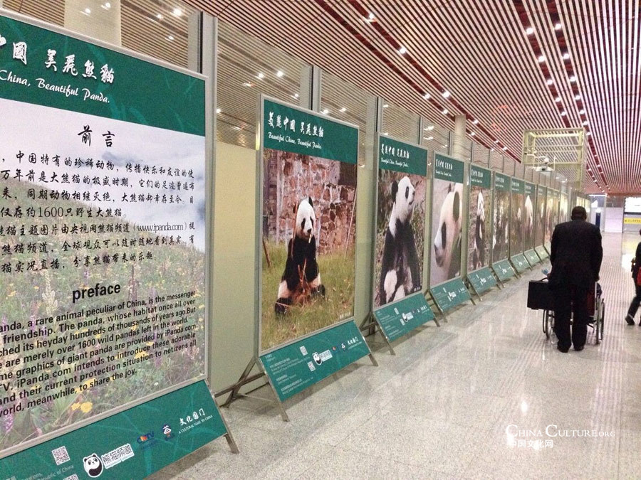 The photo exhibit “Beautiful China, Beautiful Panda” is underway inside Terminal 3 at the Beijing Capital International Airport. [Photo/chinaculture.org]