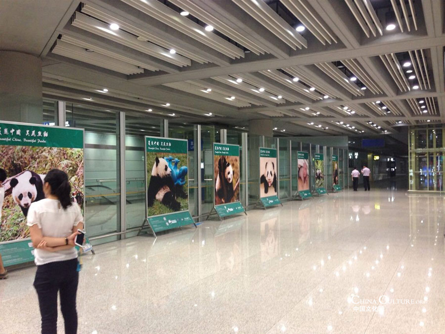 The photo exhibit “Beautiful China, Beautiful Panda” is underway inside Terminal 3 at the Beijing Capital International Airport. [Photo/chinaculture.org]
