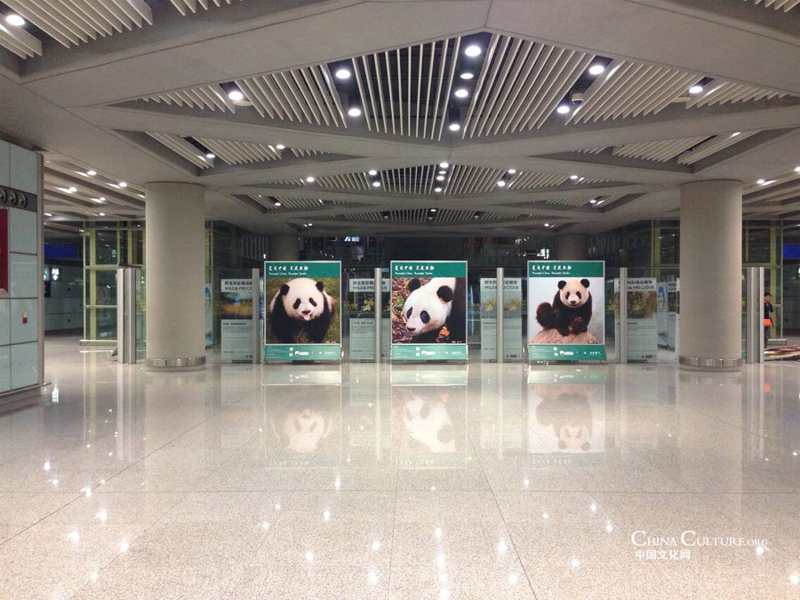 The photo exhibit “Beautiful China, Beautiful Panda” is underway inside Terminal 3 at the Beijing Capital International Airport. [Photo/chinaculture.org]
