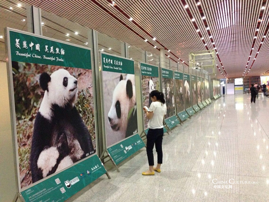The photo exhibit “Beautiful China, Beautiful Panda” is underway inside Terminal 3 at the Beijing Capital International Airport. [Photo/chinaculture.org]