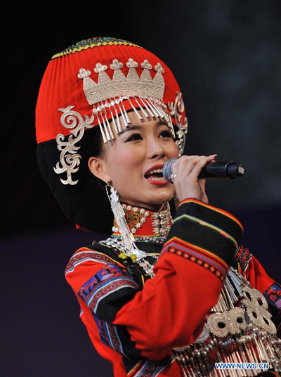 A woman of the Yi ethnic group performs during a talent show of a traditional beauty contest at Xichang City, southwest China's Sichuan Province, July 23, 2014. The beauty contest is one of the most important activities during the annual Torch Festival at Liangshan Yi Autonomous Prefecture. It can date back to over 1,000 years ago in the history of the Yi ethnic group. (Xinhua/Xue Yubin)