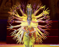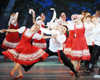 The Chinese singer Yang Yuying(fifth from the right) sings with the Australian contestant Luo Lianna. [Chinanews.com/ Yang Huafeng]