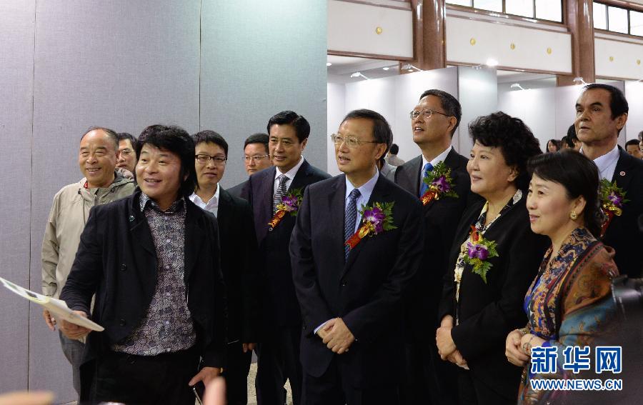 The Overseas Chinese Painting and Calligraphy Exhibition opened at the Beijing Cultural Palace of Nationalities. State Councilor Yang Jiechi attended the exhibition by invitation.[Photo/Xinhua]