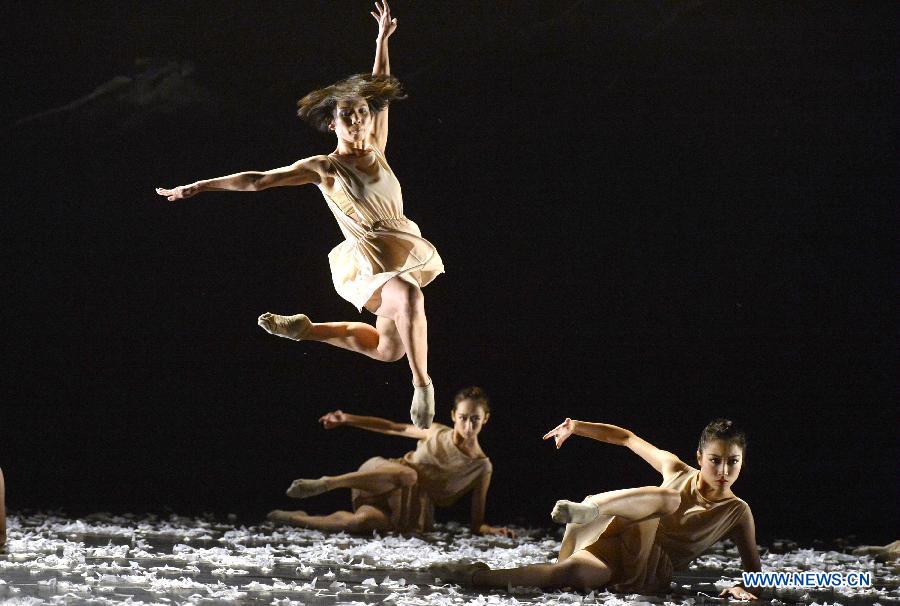 Dancers of Beijing Dance Theater preview the Wild Grass for media in New York, the United States, Oct. 15, 2014. The Wild Grass, inspired by the poems of Lu Xun, one of the most famous modern Chinese writer and poet, is presented to celebrate individual's will to persevere in a hostile environment. [Photo/Xinhua]