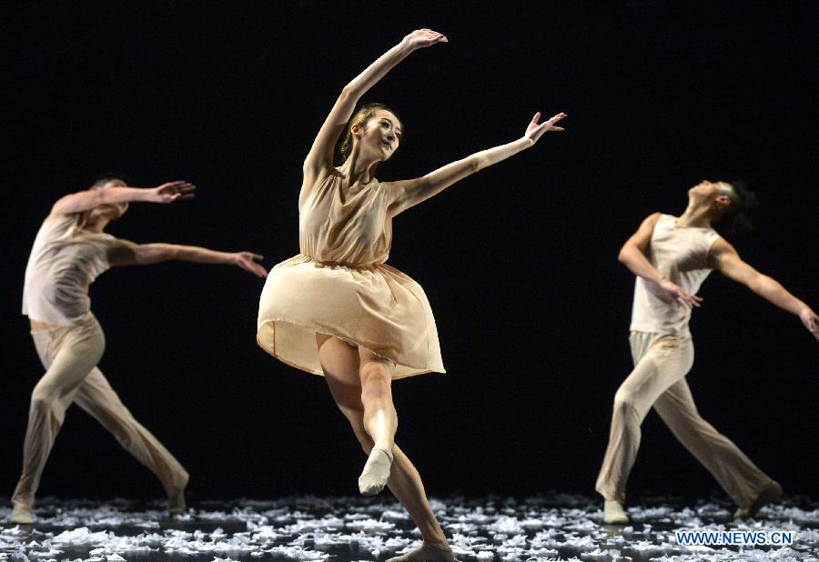 Dancers of Beijing Dance Theater preview the Wild Grass for media in New York, the United States, Oct. 15, 2014. The Wild Grass, inspired by the poems of Lu Xun, one of the most famous modern Chinese writer and poet, is presented to celebrate individual's will to persevere in a hostile environment.[Photo/Xinhua]
