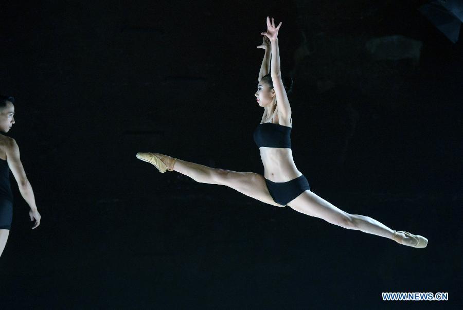 Dancers of Beijing Dance Theater preview the Wild Grass for media in New York, the United States, Oct. 15, 2014. The Wild Grass, inspired by the poems of Lu Xun, one of the most famous modern Chinese writer and poet, is presented to celebrate individual's will to persevere in a hostile environment.[Photo/Xinhua]