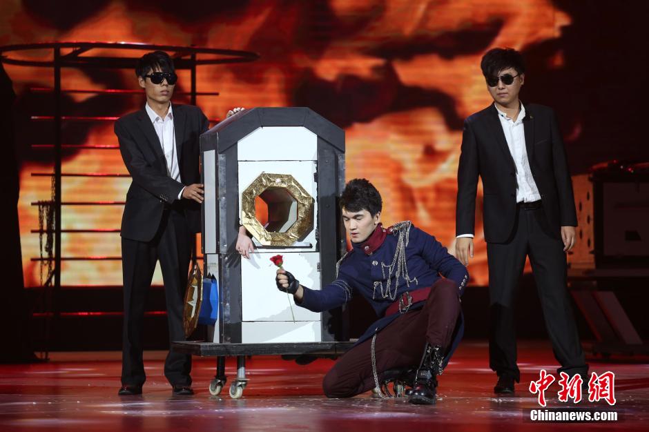 A magicain from Northwest China's Xinjiang performs Magician Night in the contest on the night of Oct. 15, 2014.[Photo/CNS]