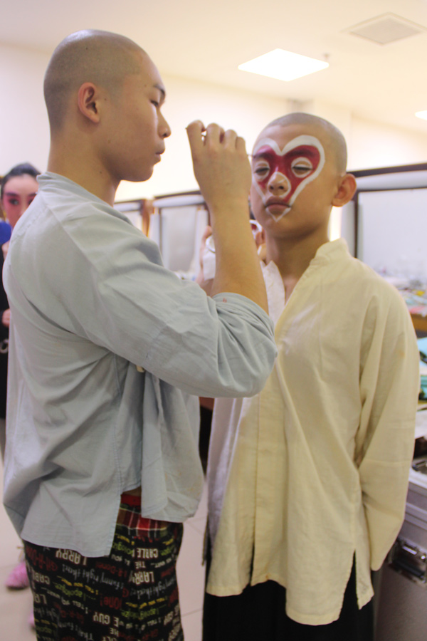 Actors dress up at the backstage.[Photo/peopledaily.com.cn]