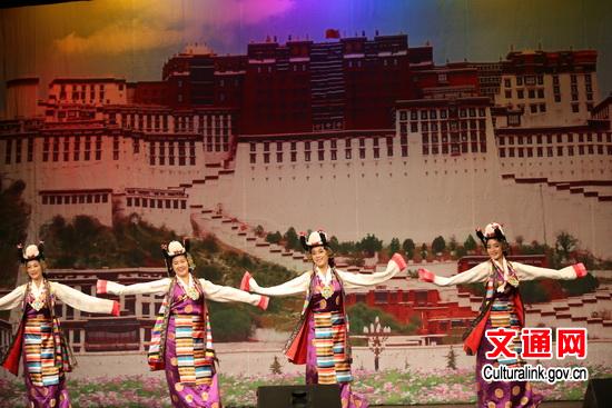 Actresses of the Tibetan art troupe performed on stage.[Photo/culturalink.gov.cn]
