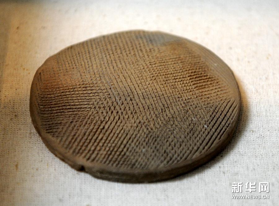A ceramic cake with intertwined dents on its surface on display at Yinxu Museum in Anyang city, Central China's Henan province, Oct 31, 2014. It was used for scrubbing at bath during the Shang Dynasty (1600 BC1046 BC). [Photo/Xinhua]