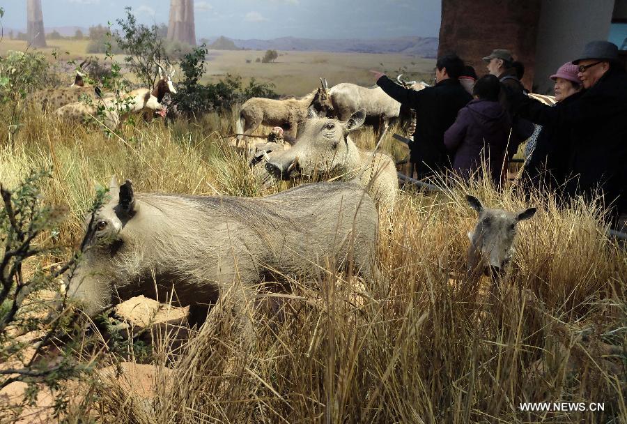 Visitors watch wild animal specimens donated by American philanthropist Kenneth E Behring at Shandong Museum in Ji'nan, capital of east China's Shandong Province, Nov. 25, 2014. [Photo/Xinhua]