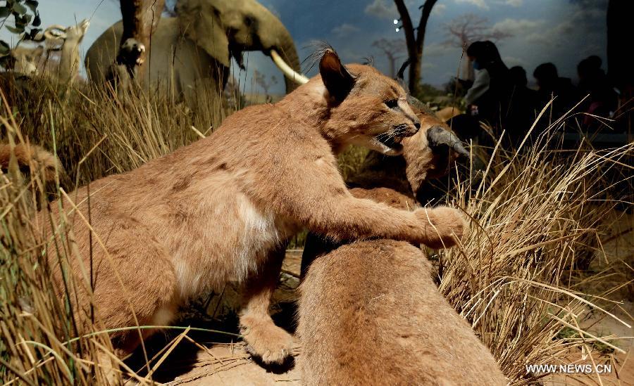 Visitors watch wild animal specimens donated by American philanthropist Kenneth E Behring at Shandong Museum in Ji'nan, capital of east China's Shandong Province, Nov. 25, 2014. [Photo/Xinhua]