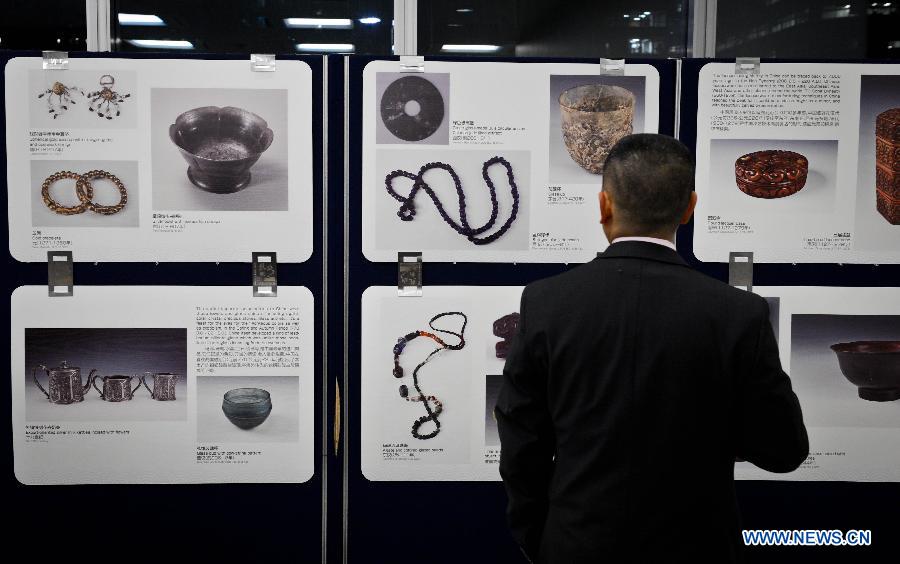 A visitor looks on photos during a photo exhibition on Maritime Silk Road at the UN headquarters in New York, the United States, on Dec 15, 2014. A photo exhibition on Maritime Silk Road opened at the UN headquarters on Monday, showing trade and cultural exchanges between China and the rest of the world over 2,000 years ago. [Photo/Xinhua]