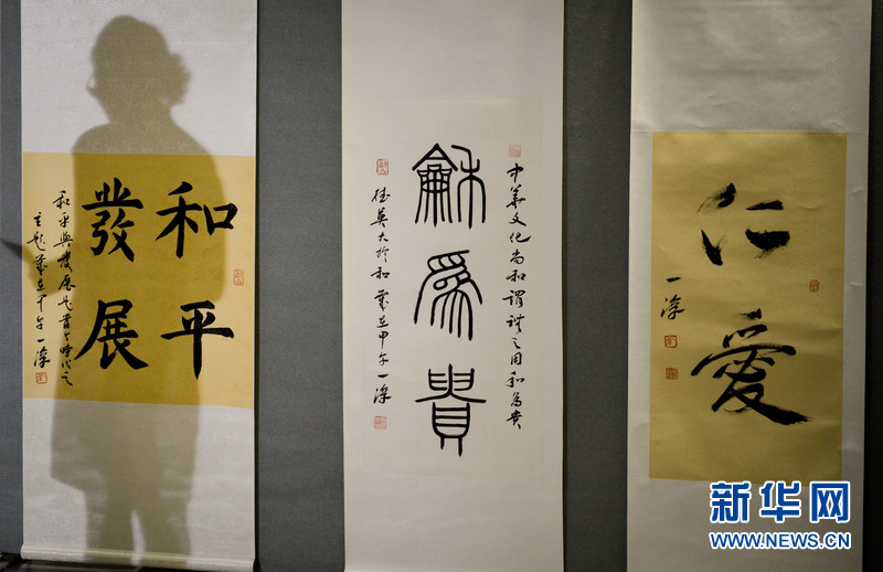 A Chinese calligraphy exhibition themed "Dream of Harmony" opened at the UN headquarters in New York on Dec 18, 2014. [Photo/Xinhua]