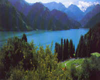 The Heavenly Lake scenic area can be divided into four natural view belts: the lower mountain belt, the mountain coniferous forest belt, the alpine and sub-alpine belt, the and ice and snow belt. Riding a horse, one can, within one day, arrive at the foot of the Bogeda Peak that is the highest peak of the eastern part of the Tianshan Mountains.