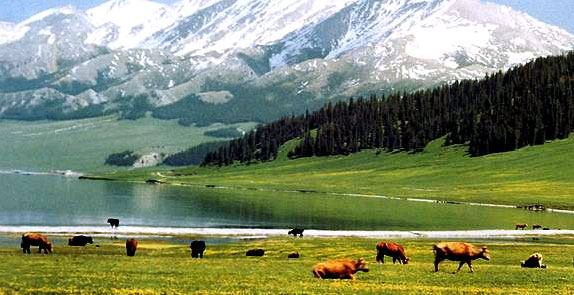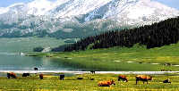 Tianshan Mountain and the Heavenly Lake are also abundant in forest and animal resources. Apart from the dragon spruces, condense-leaf poplars, and birches, there are extensively spread medicinal herbs like snow lotus, caladium, and edible plants, as well as abundant animals, such as red deer, argali (a large wild sheep), Beishan sheep,snow leopards, stone martens, lynxes, snow weasels, snow chickens, Tianshan deer, bighorn sheep, Tianshan antelope, and roe deer, and so on.