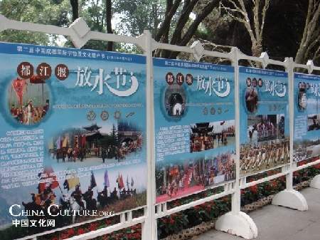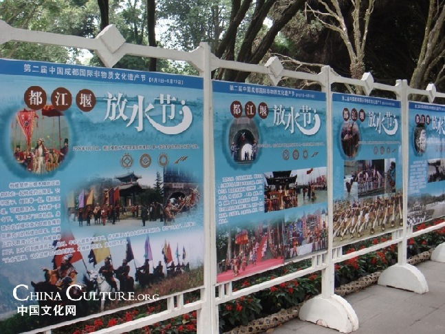 由都江堰而產(chǎn)生的具有強烈地域色彩的都江堰水文化包括水文學、水文物、水神學等,諸如“二王廟”、“伏龍觀”、“觀景臺”等處的人文景觀;改建魚嘴挖掘出土的東漢李冰石像和“飲水思源”石刻;歌頌李冰父子降龍治水的民間傳說和具有一定宗教神學色彩的祭祀活動;以及由此而產(chǎn)生的祭水、祭神、祭人的詩、詞、書畫的水文學等,形成獨具特色的都江堰水文化。
