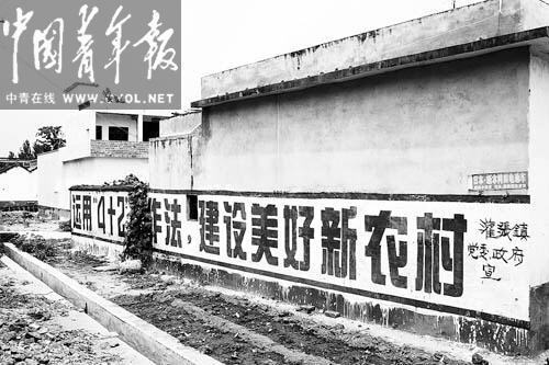 齊保東說,在顯眼的地方的同一堵墻壁上,他寫了又刷,刷了又寫,年復一年,不知寫了多少標語,每條標語對應的,是一項國家或當?shù)卣恼叱雠_。