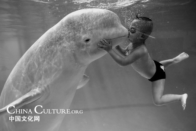 Yangyang, aged 3, kisses a beluga at the Qingdao Ocean Park in Qingdao, Shandong province, on June 2, 2007. Yangyang was born prematurely and learned to swim when he was just a few months old to help strengthen his health.