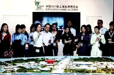 來賓在觀看世博會(huì)規(guī)劃藍(lán)圖