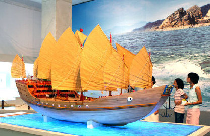 鄭和下西洋600周年紀(jì)念展中展出的鄭和一號寶船(模型)