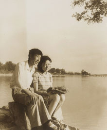 Chen Fengchun himself colored this photo of his wife with pink shirt and red lips, taken in the early 1980s in Beijing. [File photo]
