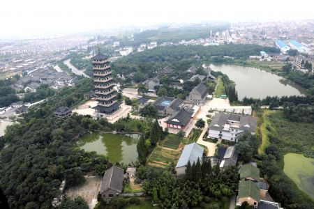 The aerial picture taken on Sept. 10, 2009 shows the time-honored Gaomin Temple in Yangzhou City, east China's Jiangsu Province.