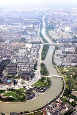 The aerial picture taken on Sept. 19, 2009 shows the canal going through Yangzhou City, east China's Jiangsu Province.
