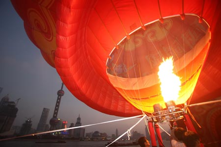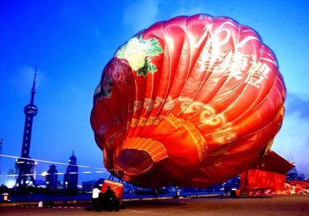 A huge hot-air balloon is raised in Shanghai, east China, Sept. 19, 2009, during a celebration of the 60th anniversary of the founding of the People's Republic of China.