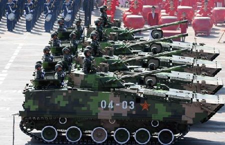 Wheeled infantry vehicles take part in a parade in celebration of the 60th anniversary of the founding of the People's Republic of China, in Beijing, October 1, 2009. [Xinhua]
