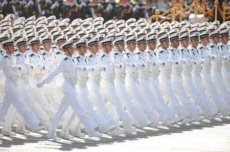 The Naval Cadets of the Chinese People's Liberation Army marches during a military parade in celebration of the 60th anniversary of the founding of the People's Republic of China, in central Beijing October 1, 2009. [Xinhua]