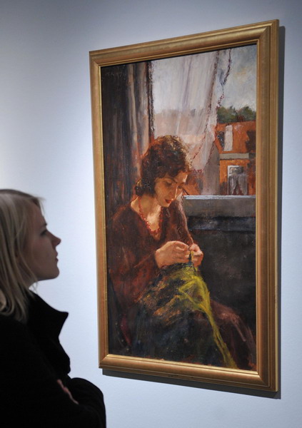 A visitor views an oil painting by Wu Zuoren at Wu Zuoren's painting exhibition, a part of Europalia Chinese Art Festival, in Brussels, capital of Belgium, Oct. 14, 2009. The exhibition entitled "Wu Zuoren, On the Crossroad of East and West" displays nearly one hundred paintings in oil and Chinese ink by Wu Zuoren (1908-1997), showcasing his artistic achievement of combining age-old Chinese traditions and Western influences. Wu is one of the most famous and important artist of China in the 20th century.