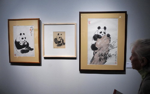 A visitor views the panda-themed paintings by Wu Zuoren at Wu Zuoren's painting exhibition, a part of Europalia Chinese Art Festival, in Brussels, capital of Belgium, Oct. 14, 2009. The exhibition entitled "Wu Zuoren, On the Crossroad of East and West" displays nearly one hundred paintings in oil and Chinese ink by Wu Zuoren (1908-1997), showcasing his artistic achievement of combining age-old Chinese traditions and Western influences. Wu is one of the most famous and important artist of China in the 20th century.