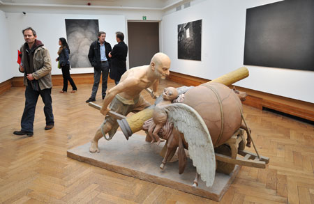 People visit the "The State of Things -- Chinese and Belgian artists' exhibition", a part of the Europalia Chinese Art Festival, in Brussels, capital of Belgium, Oct. 16, 2009. (Xinhua/Wu Wei)