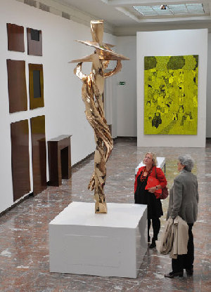 People visit "The State of Things -- the Chinese and Belgian artists' exhibition", a part of the Europalia Chinese Art Festival, in Brussels, capital of Belgium, Oct. 16, 2009. (Xinhua/Wu Wei)