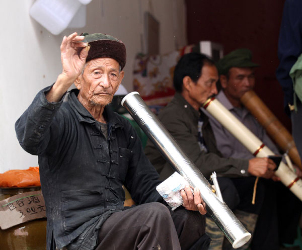 Hani men enjoy their leisure time in Yuanyang. [Photo by Zhang Wei/China Daily]