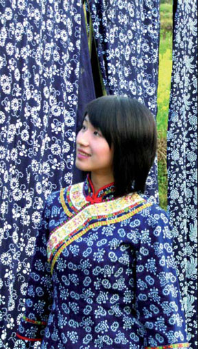 "The Miao ladies are passionate and have a love of beauty. However in past periods of scarcity, they had to make every effort to make adornments by hand and make themselves look better," said Wu Jinglian, the only inheritor of the tie-dye technique in the county of Fenghuang.