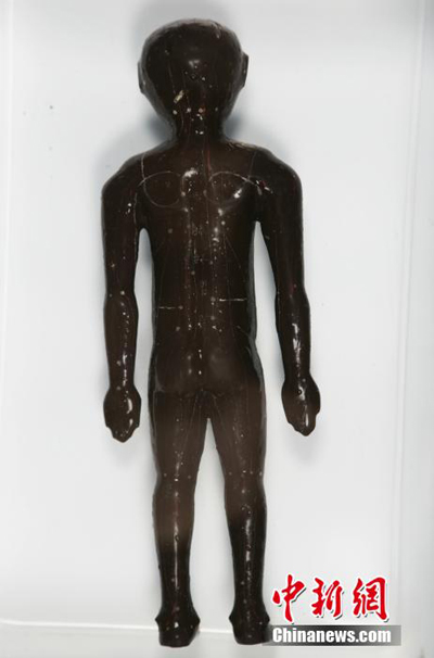 Lacquer figures with main and collateral channels marked on the body. (Photo provided by Chengdu Institute of Cultural Relics)